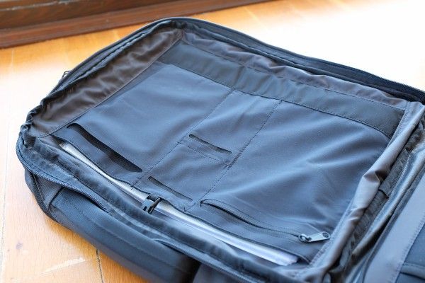 The Minaal Daily Bag is a futuristic, minimalistic, lightweight bag. It’s very simple and is a flat opening backpack. It’s full of little details and can be also carried as briefcase or messenger. Get it if you like the minimalist look and want to travel light with the minimum (and if the price is ok for you). Don’t get it if you carry a lot small stuff and gadgets and want to use it as EDC (it lacks organization).