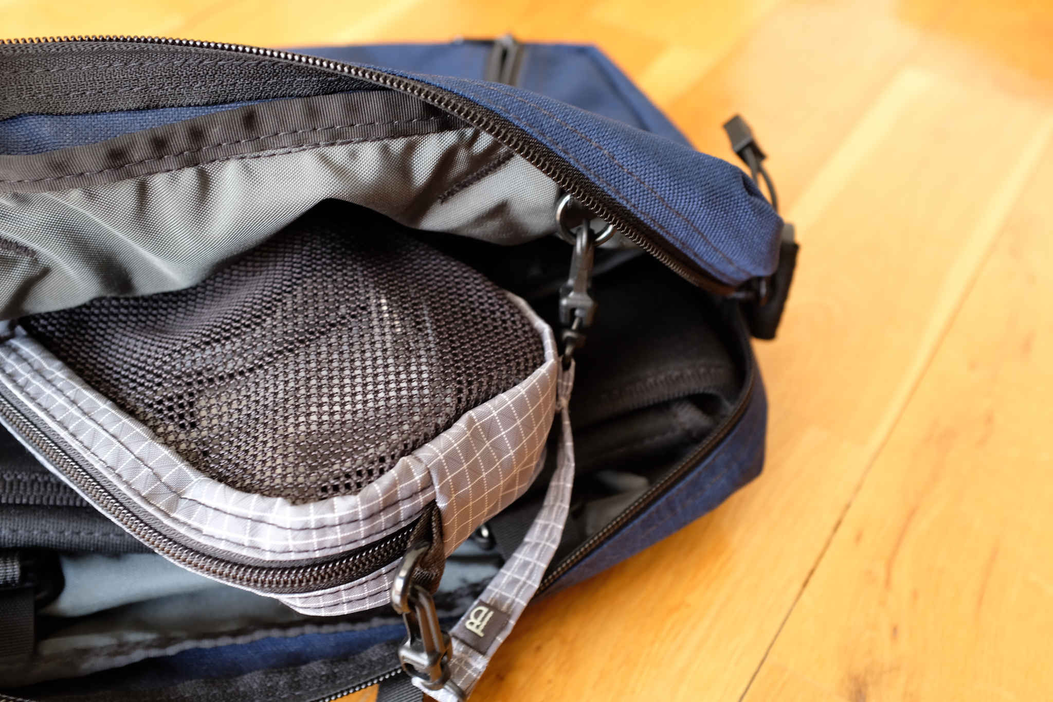 The main compartment has an internal pocket with an elastic top to hold things separately. It's just there to separate things which makes it easier to grab and look for what you need. It also has the cache system integrated, where you can use TB's own proprietary laptop sleeve system (more on this later).