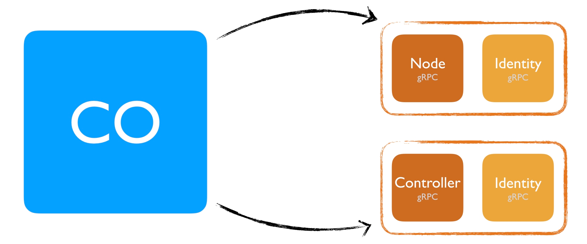 The specification defines the boundary between the CO and the CSI plugin. Before we continue, note that the plugin part actually is separated into two individual plugins.