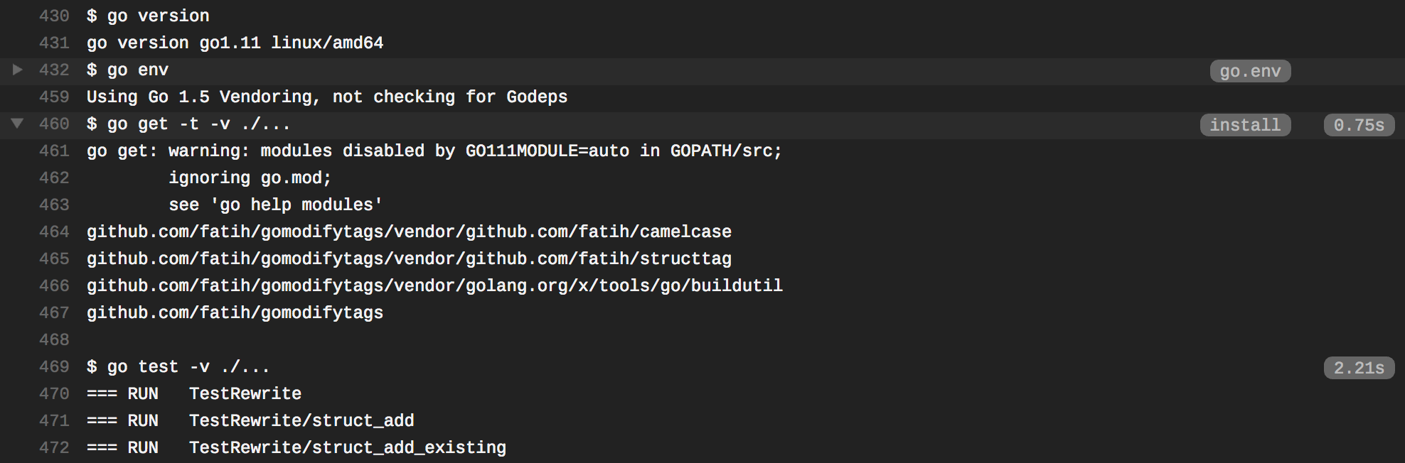 go test -v ./... - 1.11: