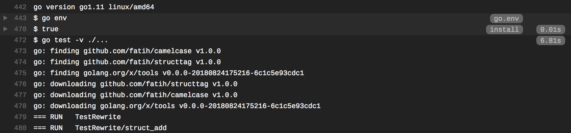 This time, it all looks fine. However, Travis CI still downloads the dependencies every time with go get -t -v ./... command:
