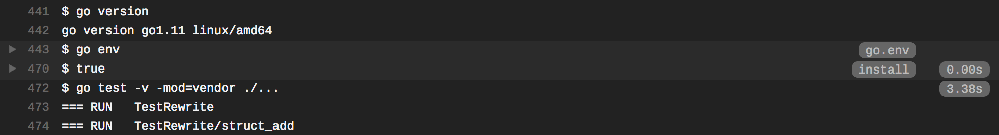 What is wrong here? You'll see that it still downloads the dependencies. There is no install step anymore, so the only command that is called is go test -v ./....
