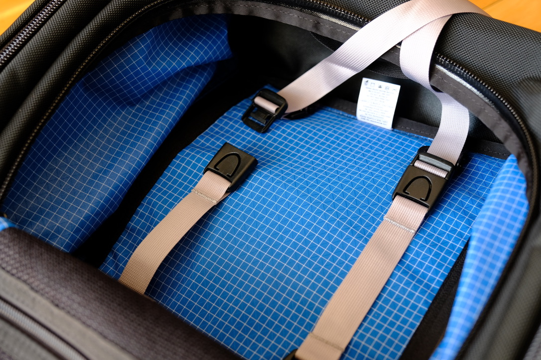 Just like the TriStar, it also comes with a pair of tie-down straps inside the main compartment. These can be used to secure folded clothing. The best way is to use packing cubes, but if you don't need them the straps come in handy. As usual, these straps are attached with a Gatekeeper loop, so if you don't need them you can remove them.