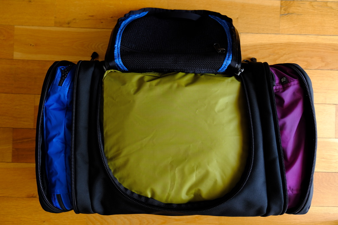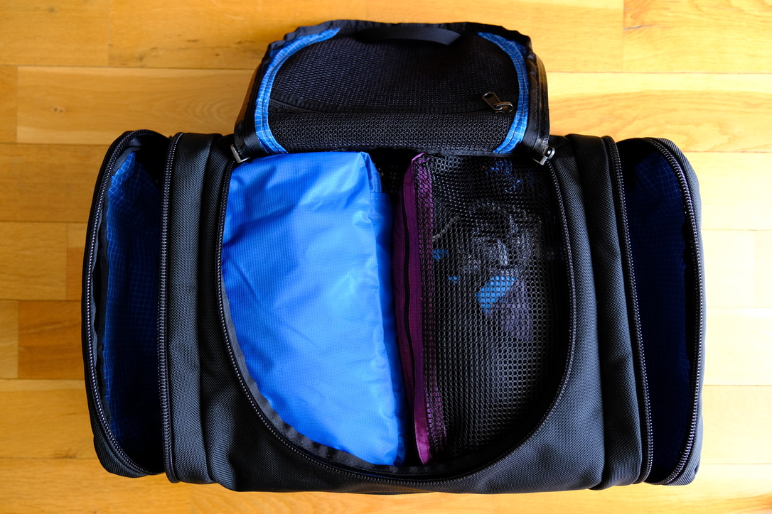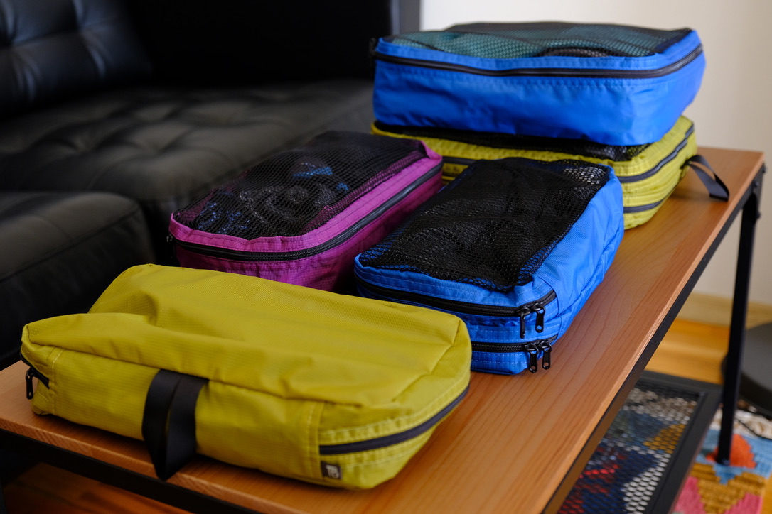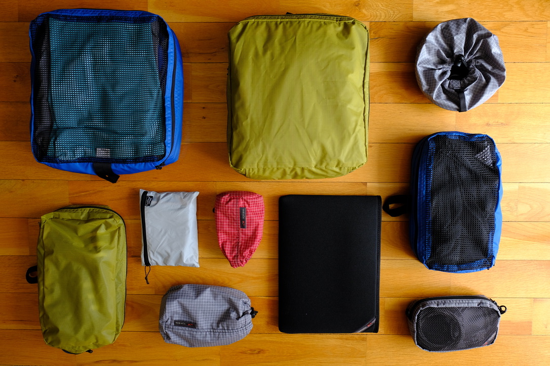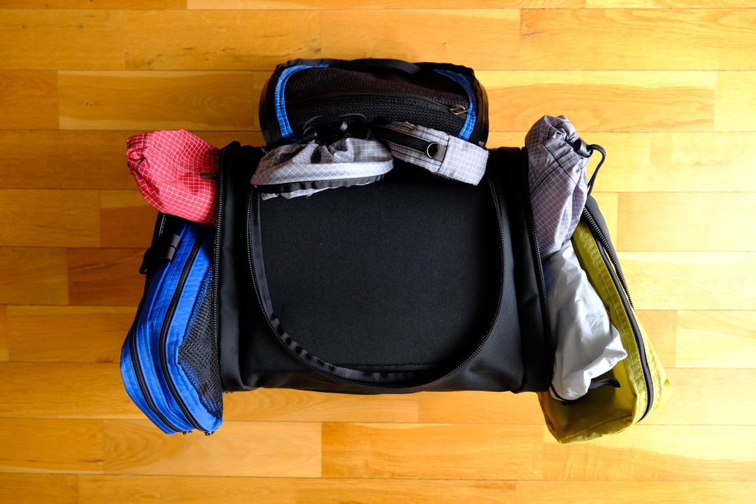 As with other Tom Bihn Bags, there are many accessories you can get to make it easier to organize your stuff during your trip with the Aeronaut. Below, I laid out some of the accessories that I used for one of my trips: