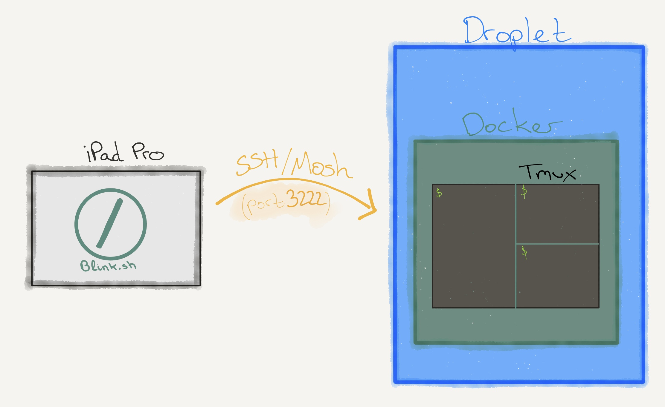 Before I go and show some of the important stuff, we need to first create a remote workstation which we can start using as our main development machine. Obviously, there is no way to develop on an iPad Pro. Even with the sandboxed emulator above, it's not useful at all. There are projects like iSH, which is a x86 emulation and provides a full Linux shell (it's doing it by doing syscall translations). However it's still in prototype mode and I haven't started to use it yet, but it's something I want to check in the future again. There are also applications like Coda to let you edit and develop with HTML, CSS, etc... But I'm not a web developer and I need a real terminal with usable tools to get my job done.