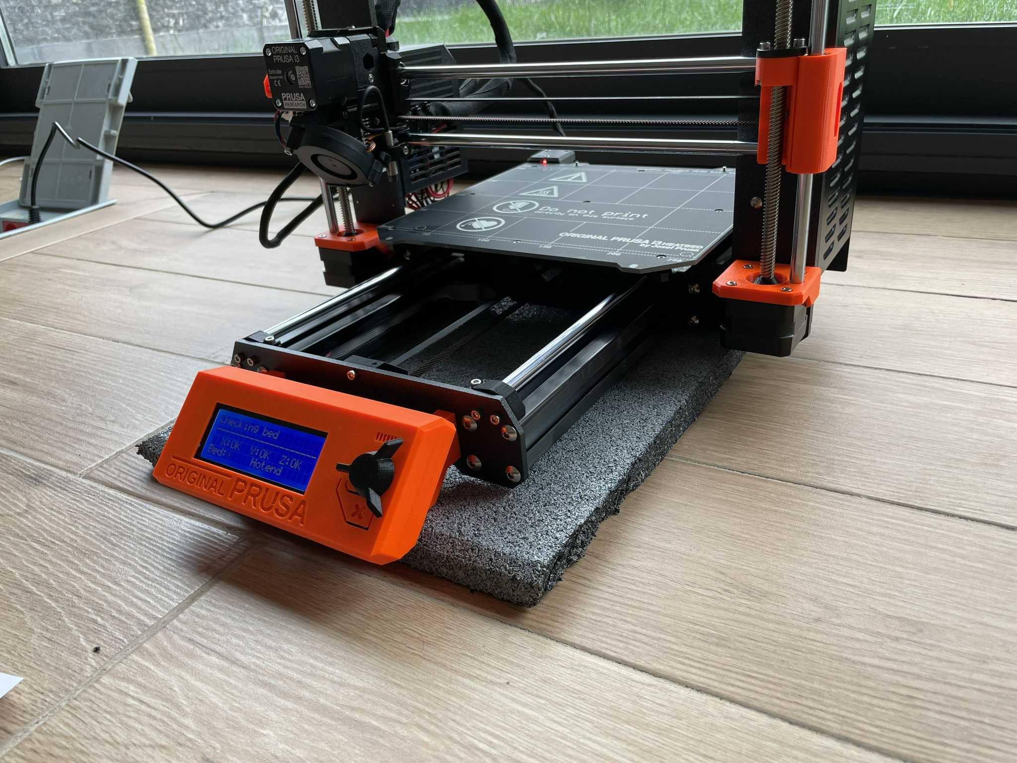 Because the motors of the 3D printer make numerous movements, it vibrates quite a bit. There are shock-absorbing tiny feet under the printer, but they are not good enough. Many people have suggested adding a mat or something to absorb the shocks. Luckily, I had some leftover mats from my home gym, which I used to absorb the vibrations.