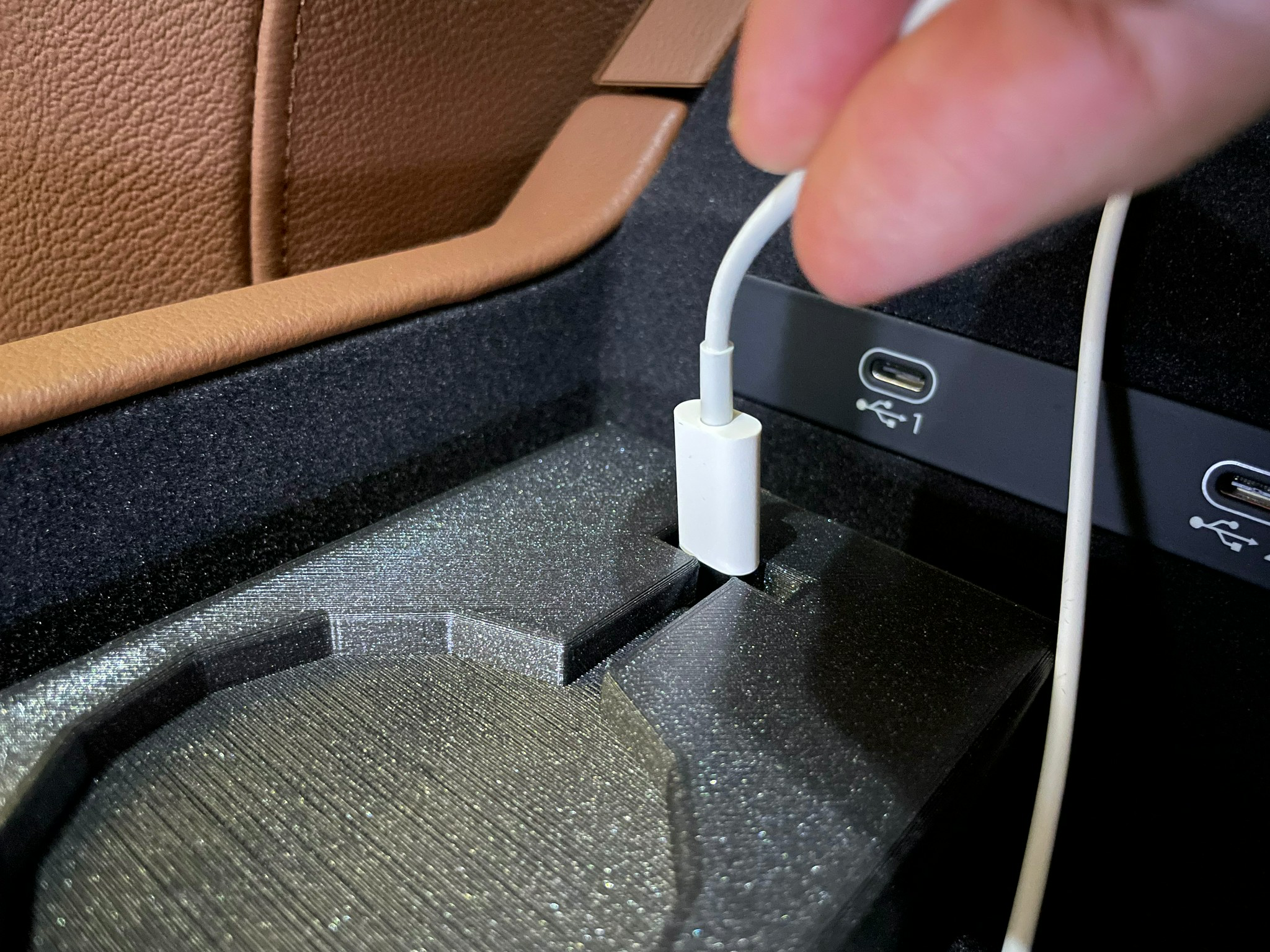 - The center console USB-C ports are not visible anymore; hence placing the phone doesn't interfere with anything anymore.