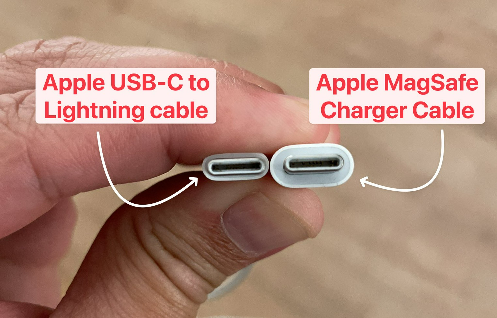 I took a USB-C Apple cable from the drawer and measured the female port section. However, I discovered that the MagSafe Charger's plug was thicker than a standard Apple USB-C cable plug. Not the actual USB-C plug, but the thick housing surrounding the connector. In fact, a lot of USB-C cables have a different connector widths and thicknesses.