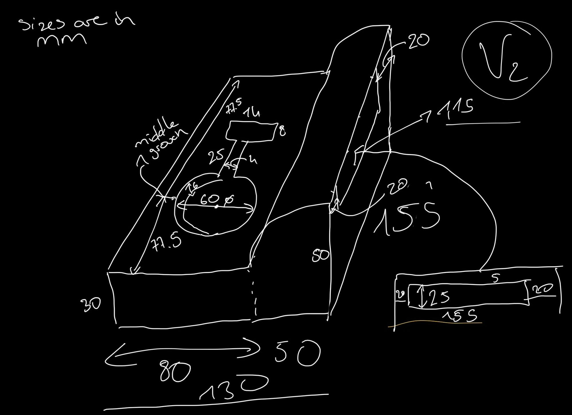 I sat down, took my iPad, opened Apple Notes and Shapr3D, and started designing a better iteration. The v2 iteration looks similar to the final iteration, so I believe I nailed it. First, before 3D modeling it via Shapr3D, I thoroughly measured every part of the center console with my caliper. I sketched the rough idea first.