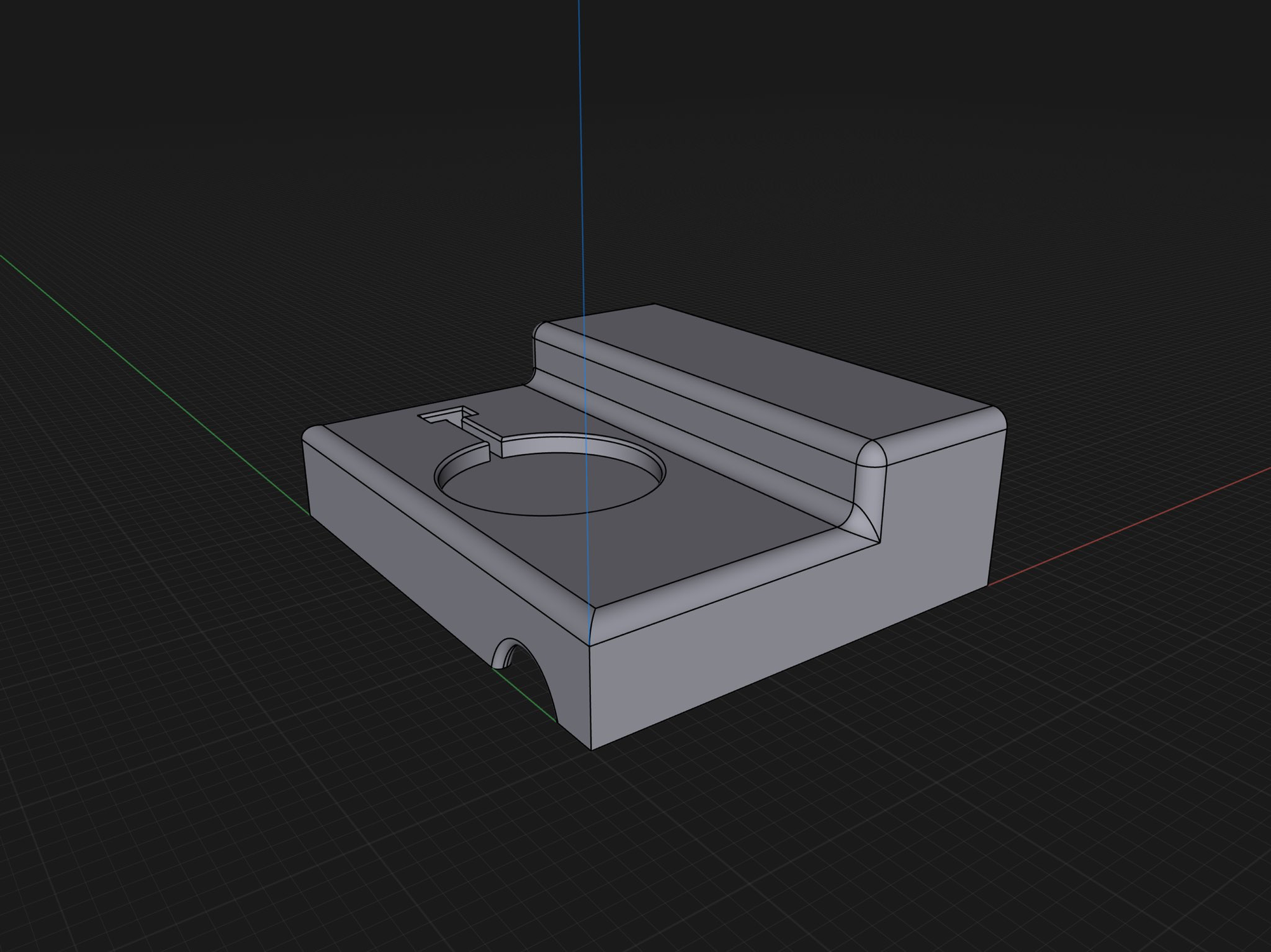 - A hole for the MagSafe insert to take it out easily. After working on so many iterations, taking out the MagSafe from the charge station was a hassle. Furthermore, to ensure I can replace it in the future, I put a small hole underneath the MagSafe pad. That way, I can push it from the bottom, and it comes off easily.
