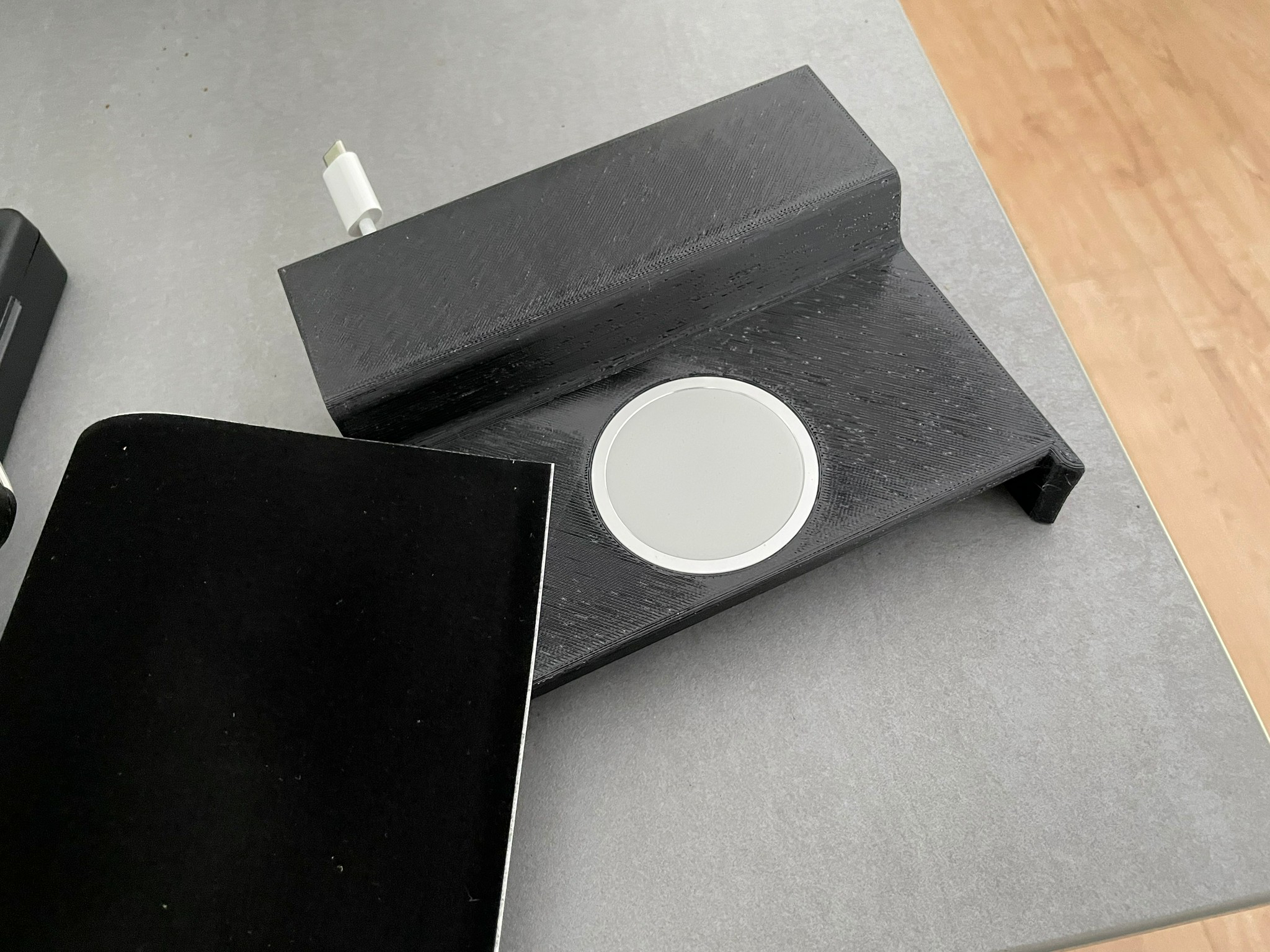 - A slight edge to stop sliding the phone. Even though the MagSafe magnets are strong, I added a small lip at the border to prevent the phone from wobbling.