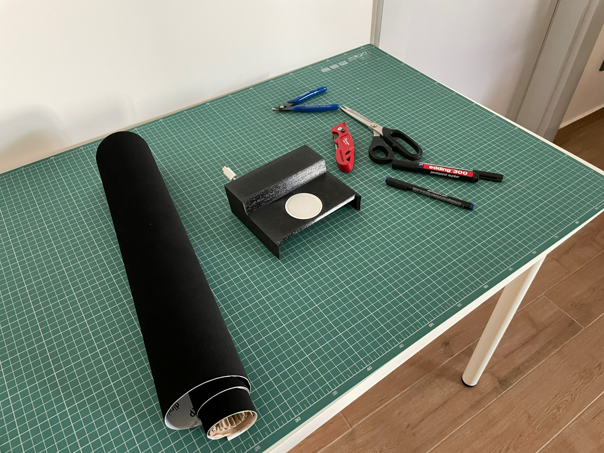 Now that the design was final, I decided to print it as a single block. While doing it, I also reminded myself that I wanted to wrap it with a fabric to match the interior materials of the car's center console.