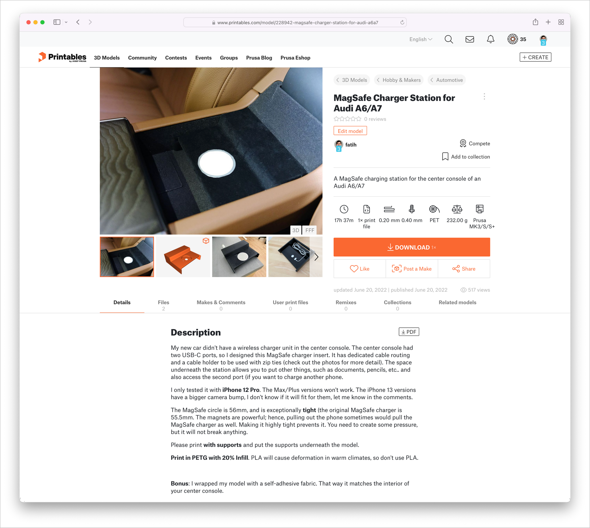 To ensure I give back to the 3D community, I also decided to share my STL files on Printables.com. If you have an Audi A6/A7 or any Audi car with a similar center console, you can print this design and start using it immediately.