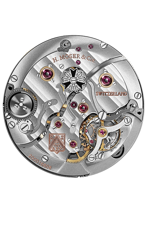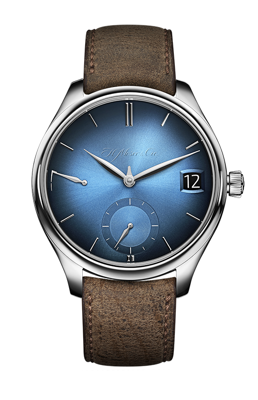 H. Moser & Cie's ENDEAVOUR PERPETUAL CALENDAR (REF. 1800-0204). There is no year complication. The month is shown via a tiny hand that is depicted between the hour and minute hand. On the back of the watch, you can see a gear that shows the years 1,2,3, and the leap year via the black indicator.
