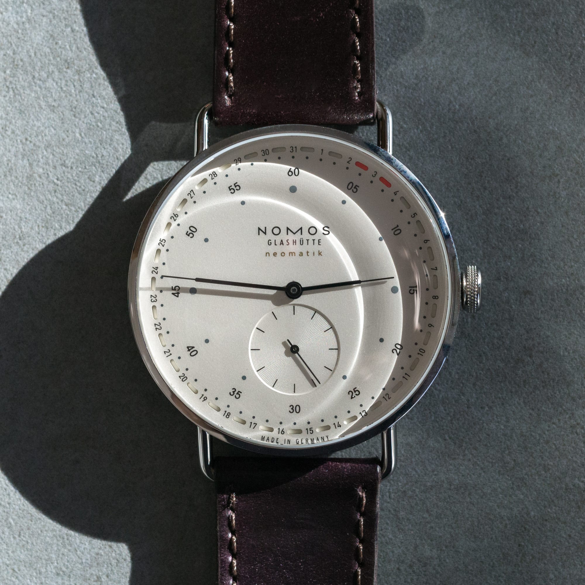 So far, we only know the day of the week and the date. Watches that also show the Month are called triple calendars. The month complication is also demonstrated in different ways. It could be a cutoff display, like the date that shows the year in Arabic numbers, or as three characters shortcuts (Jan, Feb, Mar, etc...). Or it could reuse the indices of the watch (because there are 12 indices, one per month).
