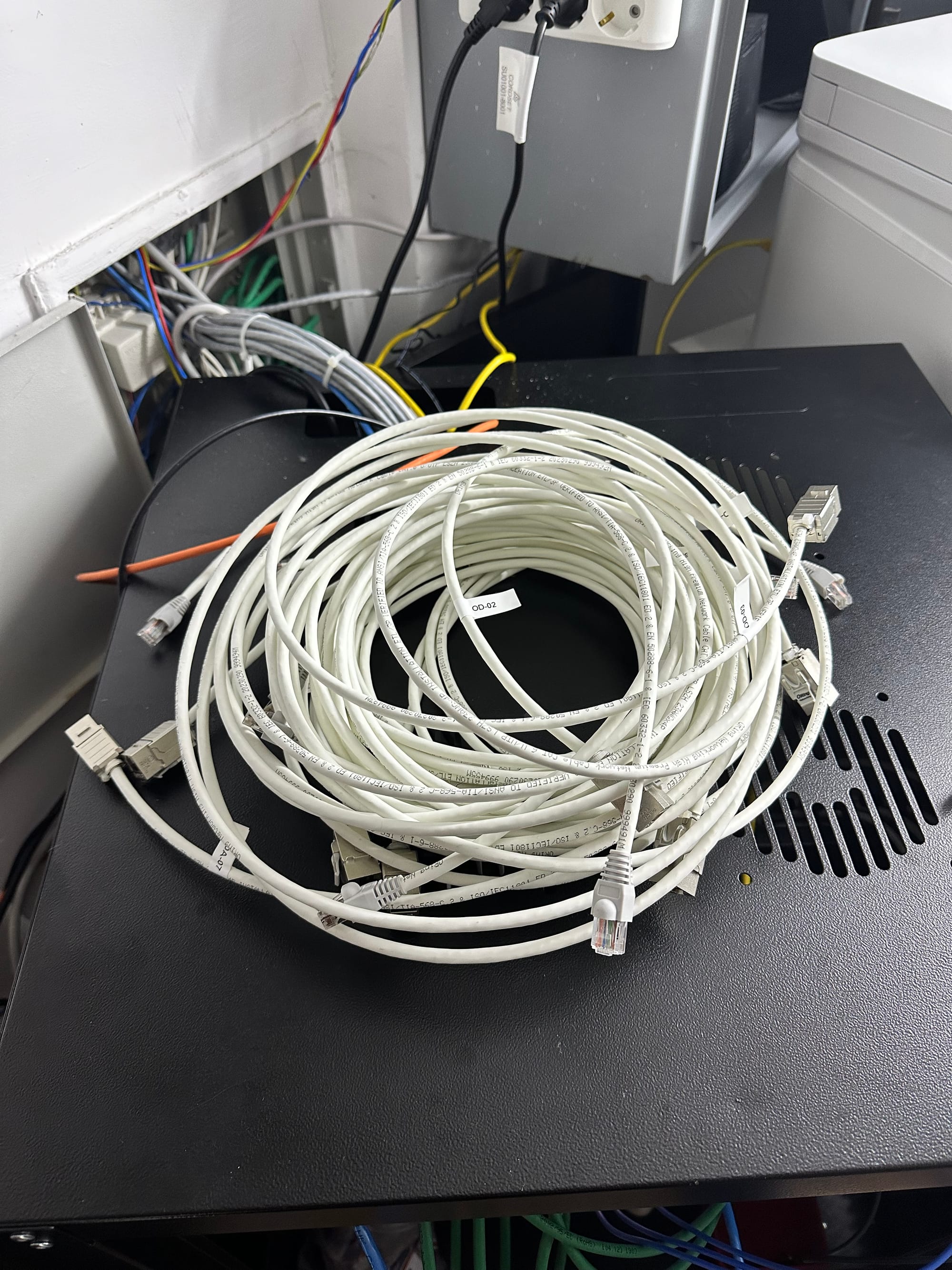 We did that before, but the contractors made the same mistakes and used short cables. Because of that, it was always a hassle to move my rack around. I decided to redo every single cable.