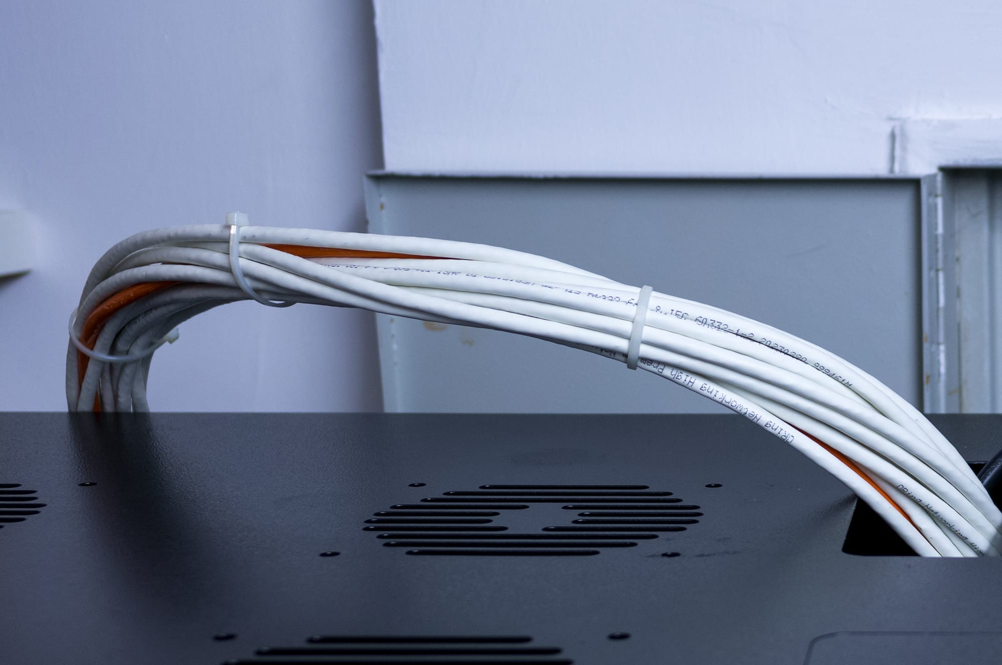 Multiple new cables to extend the RJ45 cables that terminate at the wall (you can see a glimpse in the second picture)