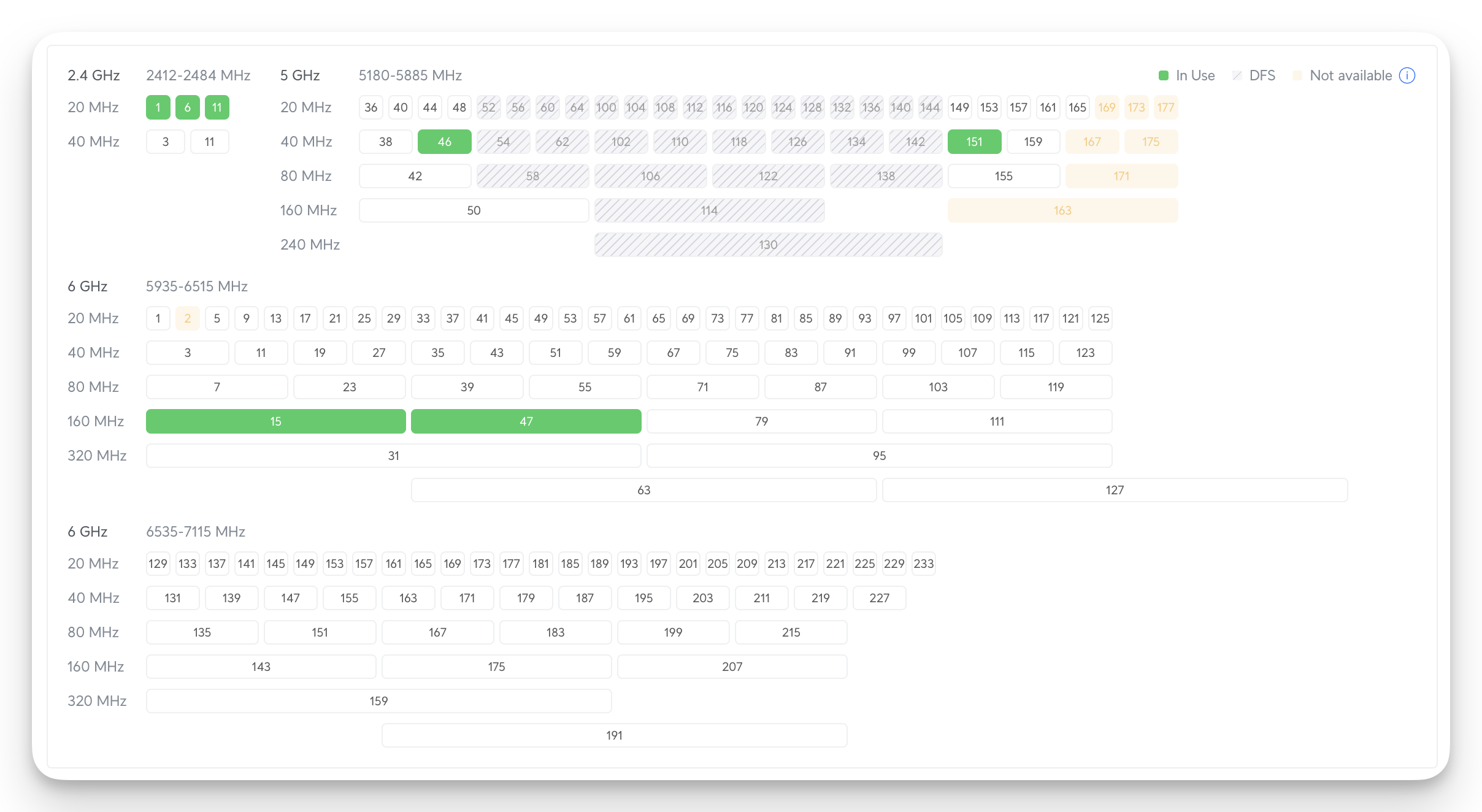 - 6 GHz: 160 MHz