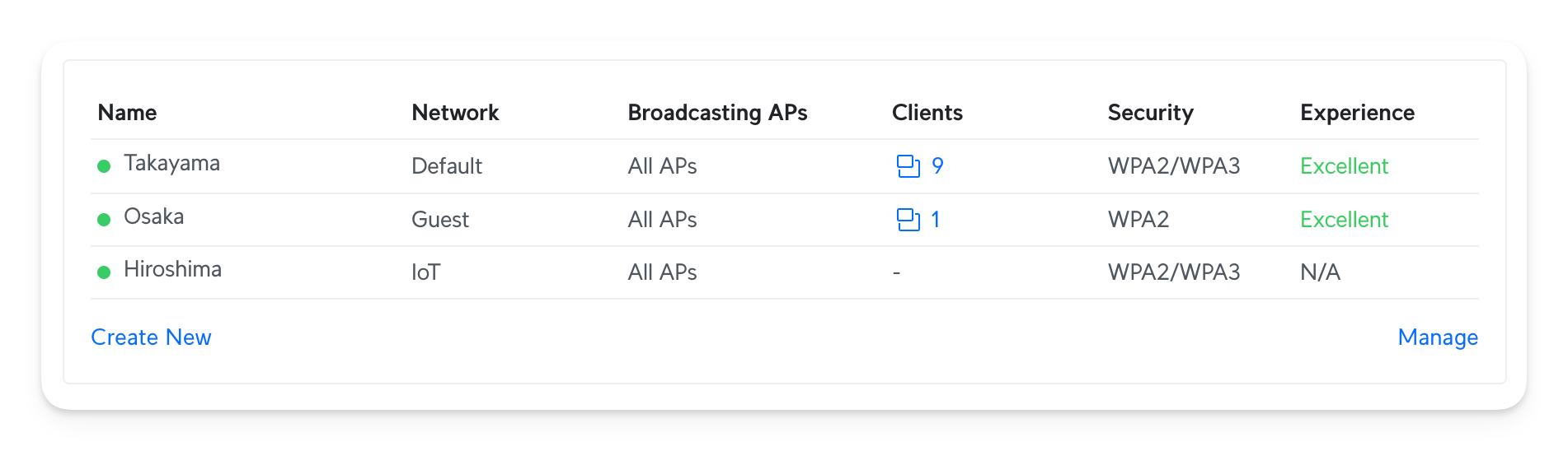 - Hiroshima: I haven't yet configured this one, but I plan to configure my various Smart Hubs, TVs, Robot Vacuum Cleaners, and other Wireless devices I don't trust. This will use a dedicated VLAN.