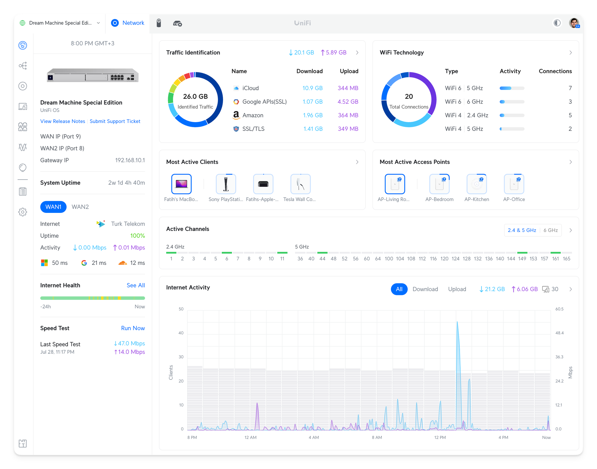 The Dream Machine is an excellent value because it is a Router, a Controller for all my Unifi devices, and an NVR for my cameras. Like my TP-Link router, it also supports multi-WAN—more on that later. (For the record, I would buy the Dream Machine Pro Max gateway if I could find them, but they don't sell them here in Turkey)