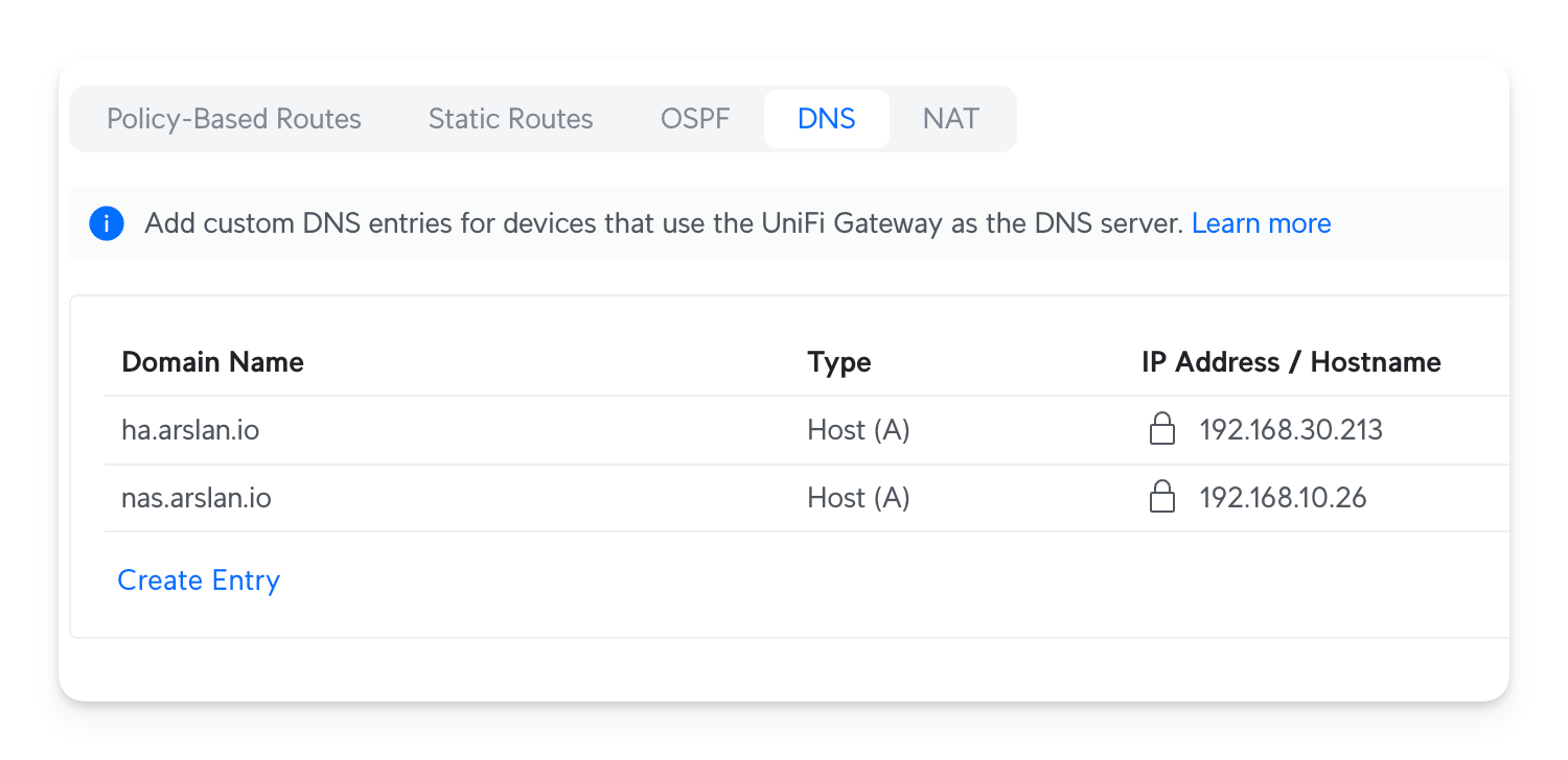 nas.arslan.io. 0 IN A 192.168.10.26My gateway IP is 192.168.10.1, hence we target it to resolve our DNS name.