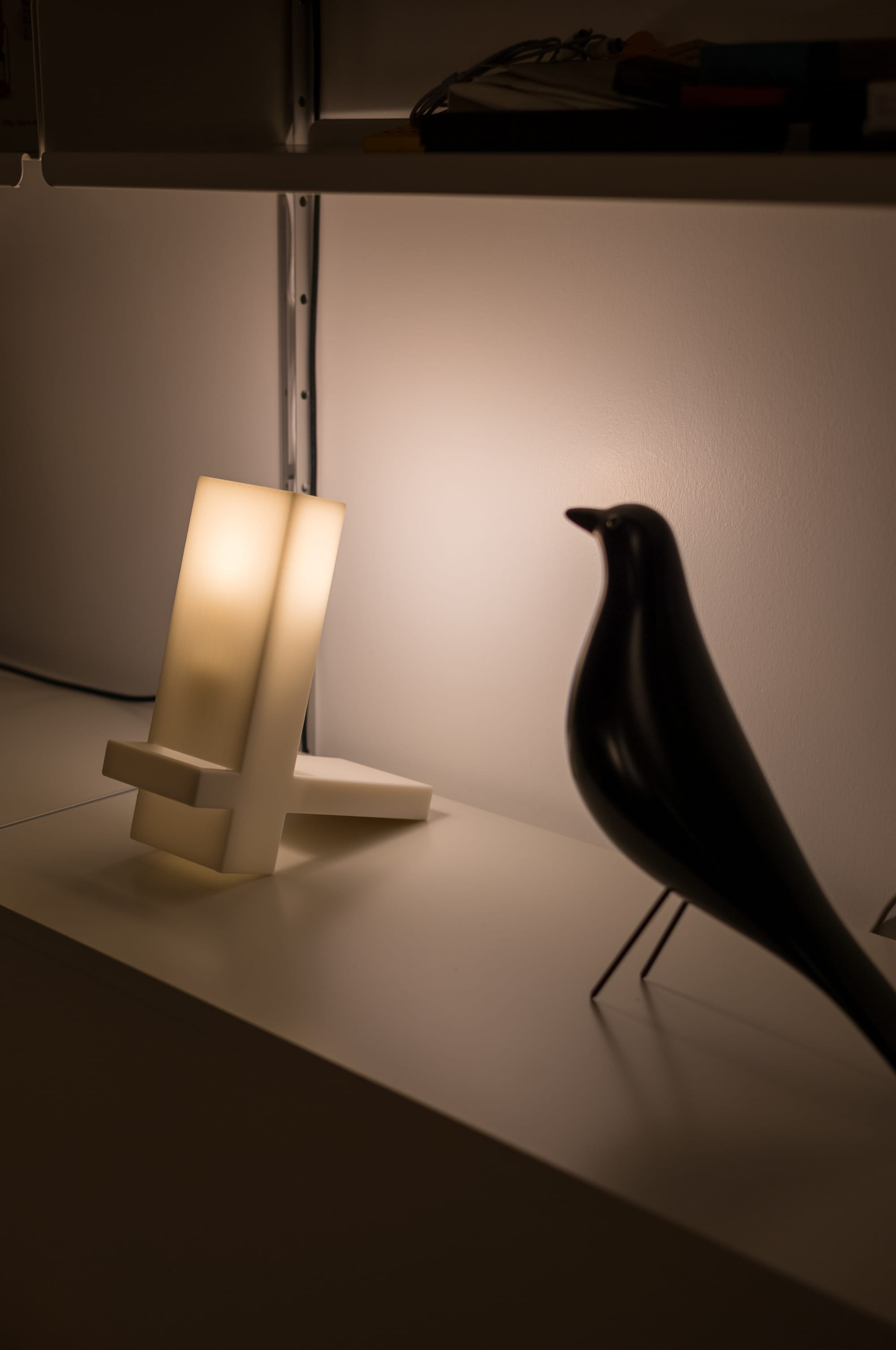 The Block lamp has several distinct features, and appears quite different from various perspectives. It's a single, unassembled piece. There are no glues, bolts or any parts that needs to be hold together. This significantly extends the lamp’s lifespan. Initially, the plan was to use CNC-machined aluminum in the long run, but to achieve that, I wanted to test its durability and usability by using it in my office for a few months (or even years).