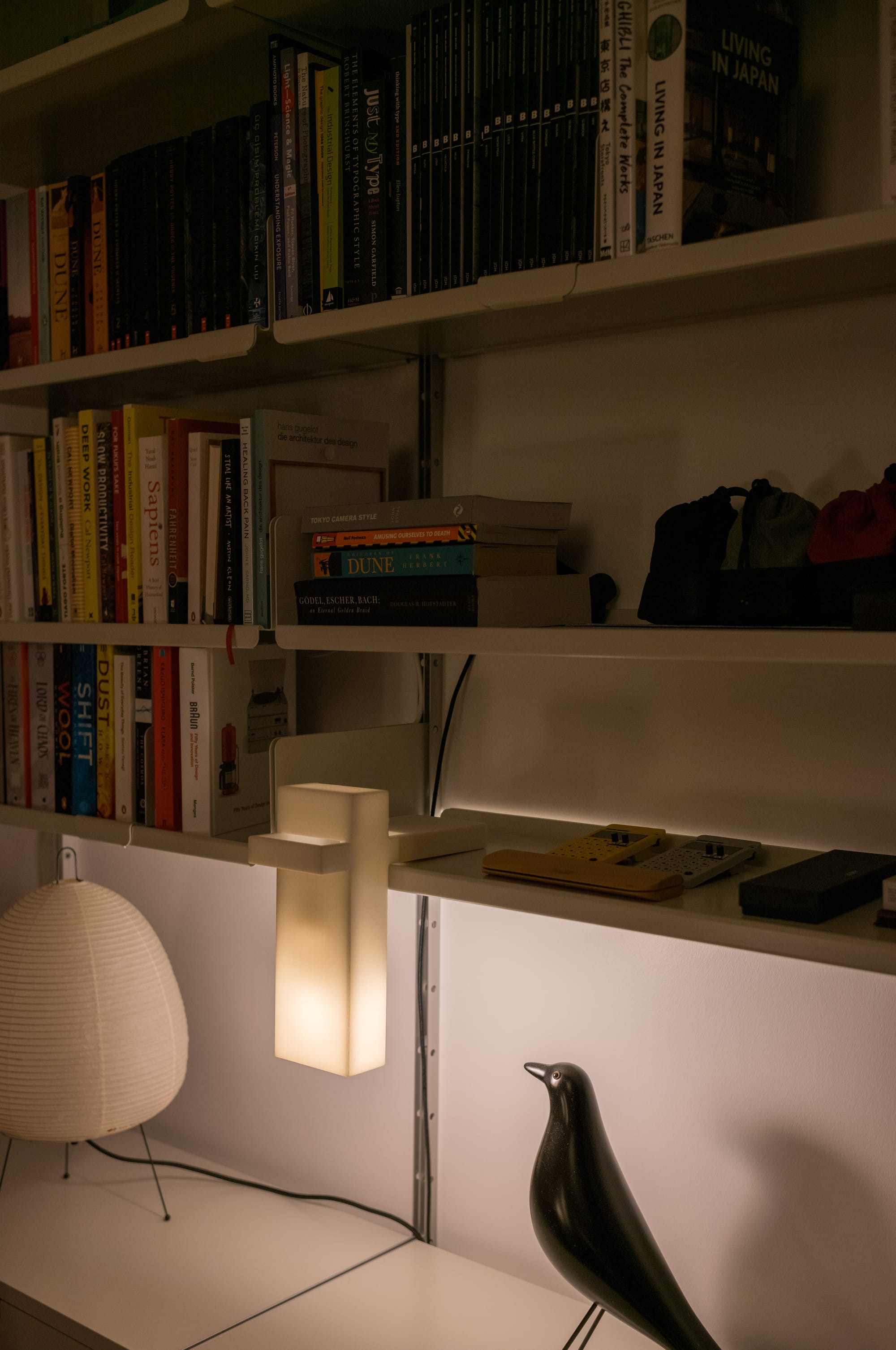 The Block lamp can be used on a shelf to create an ambient