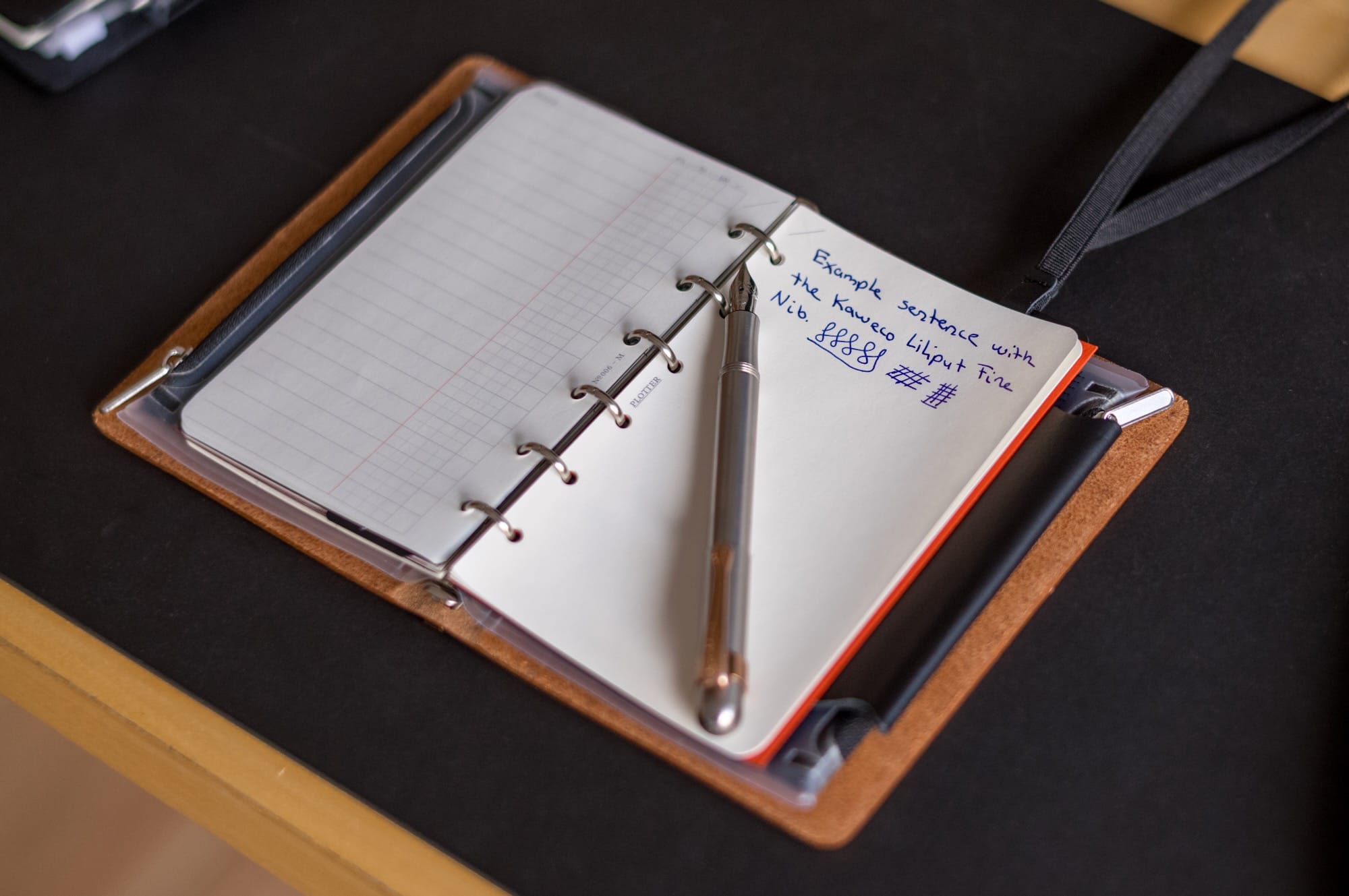 I’ve attached a Pilot G2 (0.7mm) to my Bible-sized notebook, and the Kaweco Liliput to my Mini binder. I believe the Pilot or similar gel pens are ideal for the plotter. They’re smooth and ready to use. However, when I have my Plotter notebooks at my desk, I always prefer my Lamy 2000. All these pens perform exceptionally well.