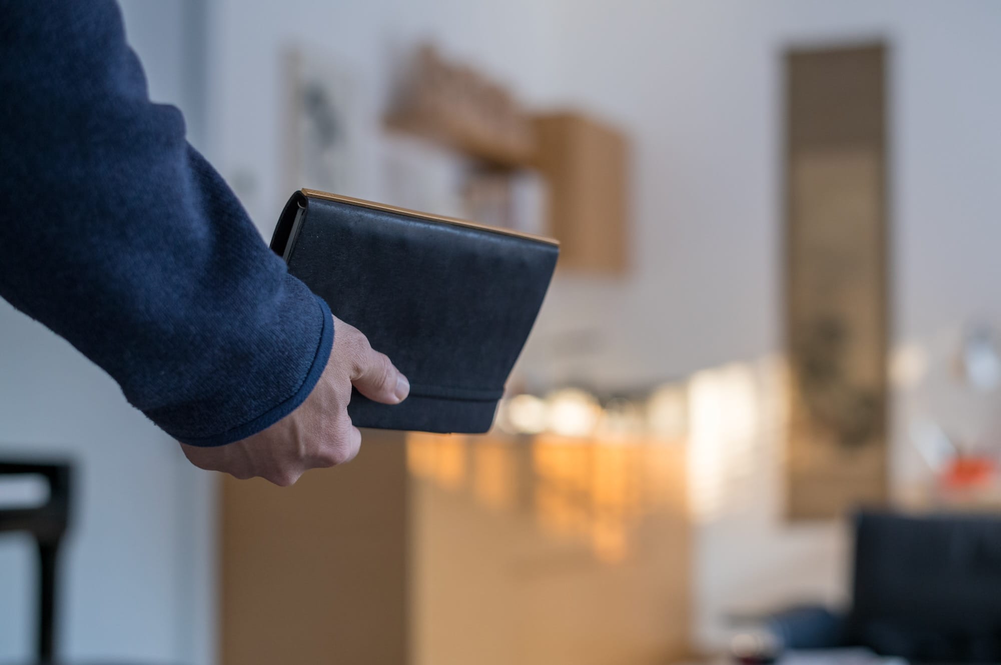 Before you begin using Plotter, you must select your Leather Binder, which will hold your papers (or what they refer to as “refills”). It’s a single piece of leather securely attached to Plotter backplates. The backplates are crafted from brass and coated with various gold colors, which vary depending on the type of leather used.