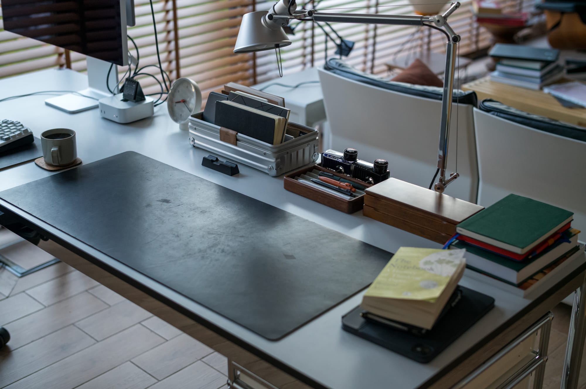 - A desk lamp that nicely illuminates the surface (It's the Artemides Tolomeo Mini, with my custom designed adaptor)