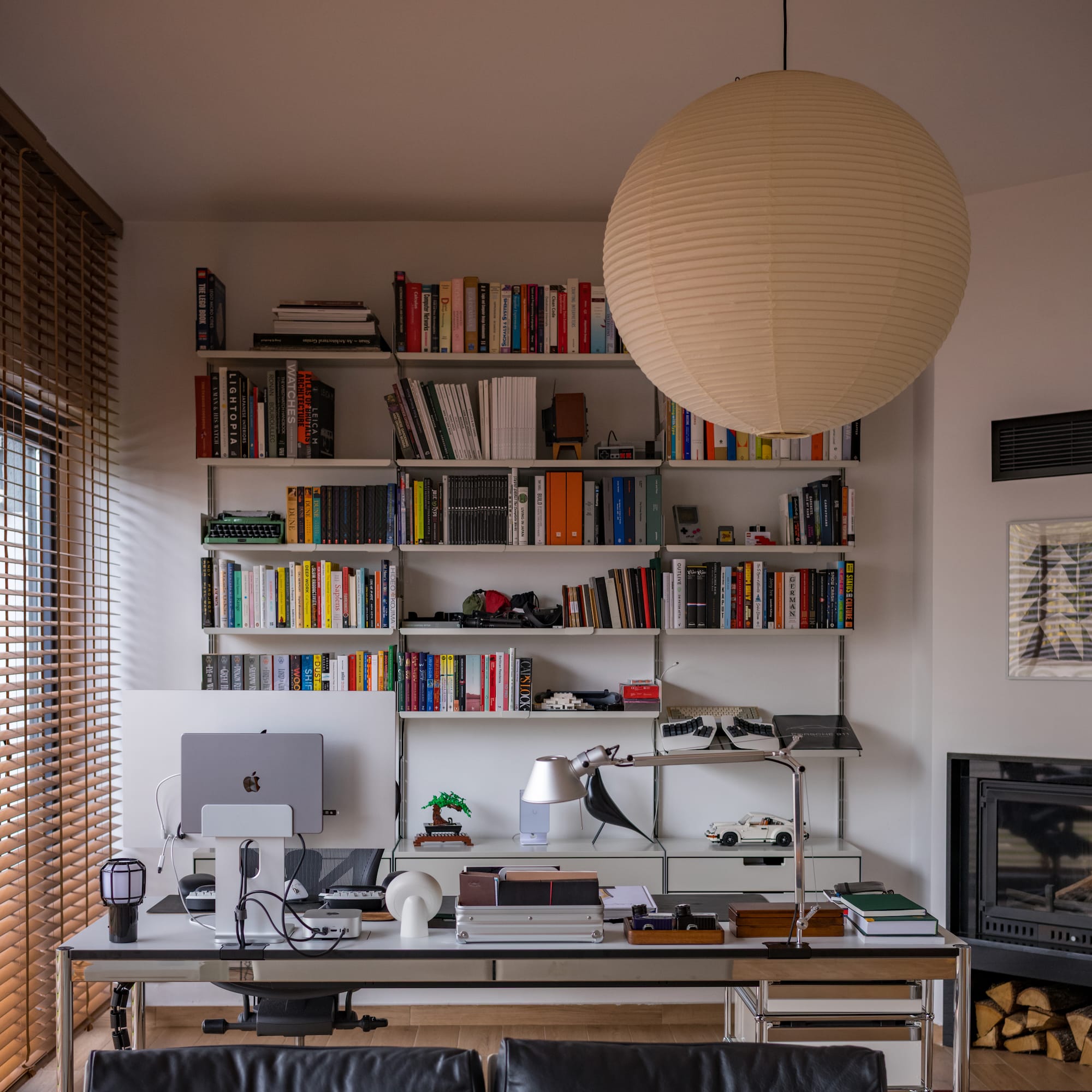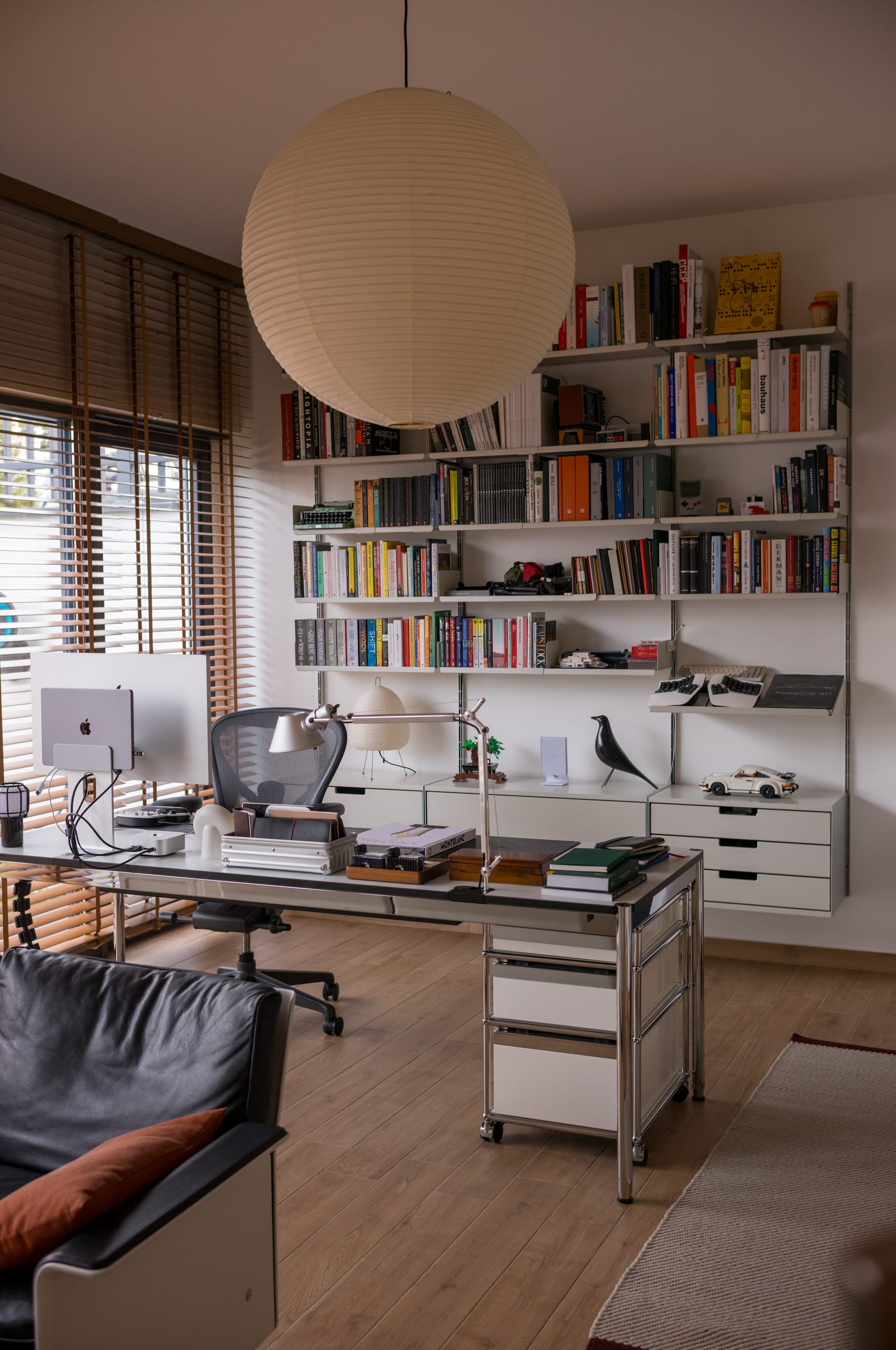 I did not want to maintain two separate desks in the same room, but I also did not want the computer to dominate everything. A single, long surface with two clearly defined areas turned out to be a good compromise. So I researched and ended up with the one in the pictures, which is a 200x75cm long desk from USM Haller.