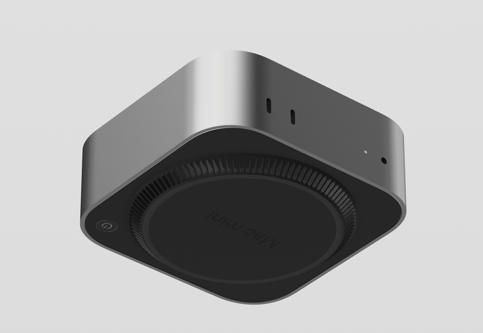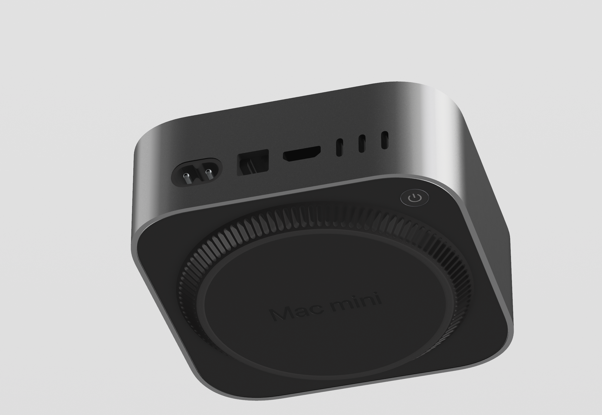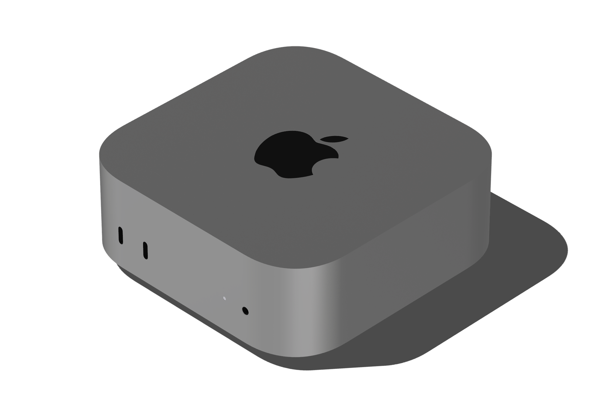 A 3d model, 1:1 representation of the new Mac mini m4, released in 2024.